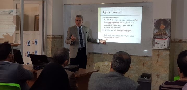 قدم التدريسي في قسم اللغه الانكليزية م.حيدرمحمد جواد حلقه نقاشيه حول (Sentence Structure) تراكيب الجمل في اللغه الانكليزيه وانواعها ضمن سلسله تطوير مهارات الغه الانكليزية