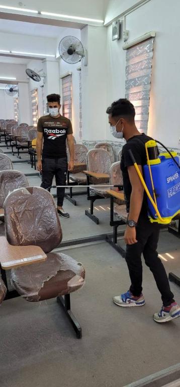 باشراف الاستاذ الدكتور علي سلطان الرفاعي تم تعفير وتعقيم القاعات الامتحانية في كلية طب الاسنان وتهيئتها لأداء امتحانات نصف السنة