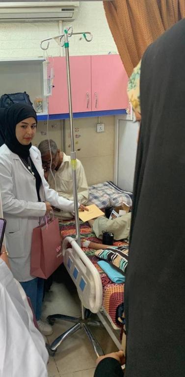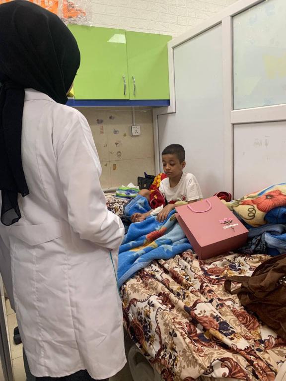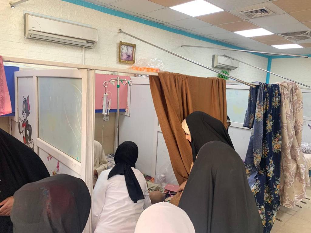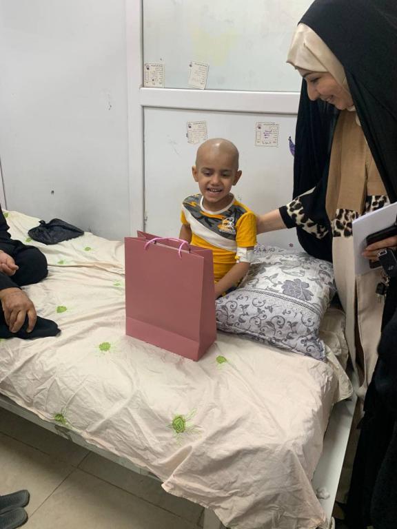 مجموعة من التدريسيين و الطلاب من جامعة اهل البيت كلية طب الأسنان في زيارة الى مستشفى الحسين التعليمي/ قسم الاورام/ ردهة الاطفال