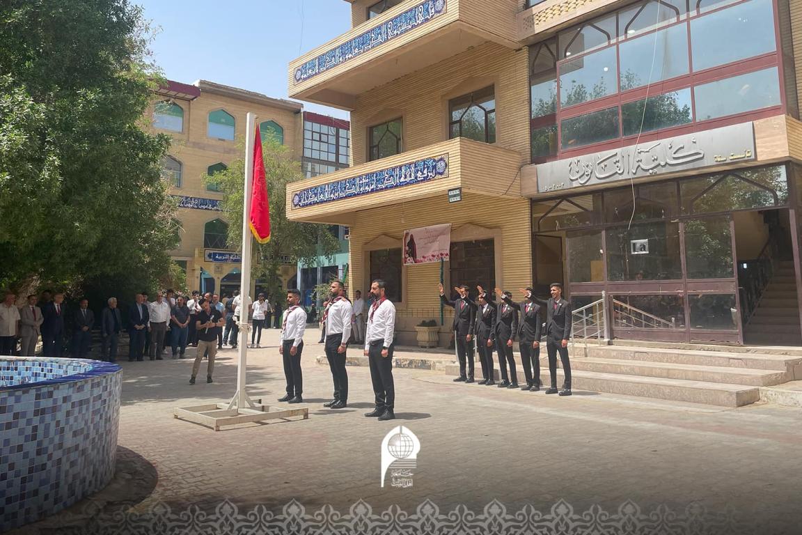 ‎اقامت جامعة اهل البيت عليهم السلام مراسيم رفع الراية الزينبية المباركة في رحاب جامعة اهل البيت عليهم السلام ، وقد ابتدأ الحفل برفع راية السيدة زينب عليها السلام من قبل الفرقة الكشفية في الجامعة ،وصاحب ذلك قراءة نشيد يامهدي الخاص بطلبة جامعة اهل البيت عليهم السلام من قبل فرقة انشاد الجامعة وخلالها القى الاستاذ صادق القزويني مدير اعلام الجامعة أبياتا من الشعر بحق بطلة كربلاء زينب سلام الله عليها ثم القى الاستاذ الدكتور حميد النجدي رئيس جامعة اهل البيت عليهم السلام كلمة في المناسبة تحدث خلالها عن موقف السيدة زينب عليها السلام البطولي والنهضة الاعلامية العالمية التي ركزت اعمدة الثورة الحسينية وواقعة الطف ، وجذرت انتصار الدم على السيف و نشرت مظلومية الامام الحسين عليه السلام بكل شجاعة وبساله لتصبح ثورة الطف ثورة ازلية تستشف منها الدروس والعبر بعدها شكر السيد رئيس الجامعة كافة الحضور من عمداء الكليات واساتذة كرام وطلبة اعزاء