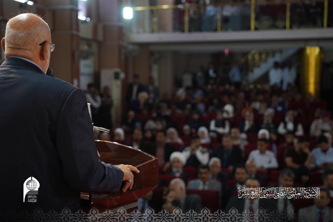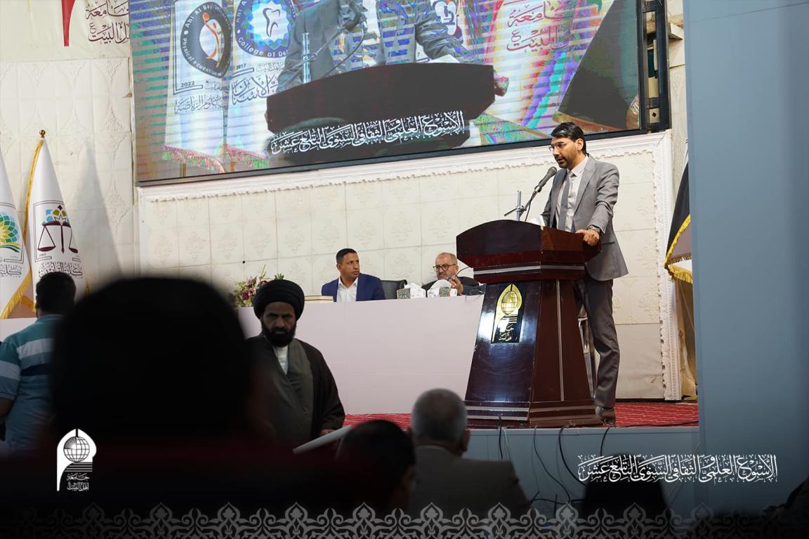 بحضور رسمي وأكاديمي انطلقت فعاليات الأسبوع الثقافي والعلمي التاسع عشر في رحاب الجامعة وتحت عنوان ( في التجارب علم مستأنف ) على القاعة المركزية الكبرى حيث افتتحت الفعاليات بقراءة ايات من الذكر الحكيم تلاها على مسامع الحضور السيد علي القزويني اعقبها الإنصات إلى النشيد الوطني العراقي وقراءة سورة الفاتحة على ارواح شهداء العراق والأمة الإسلامية لتصدح بعدها حناجر فرقة إنشاد الجامعة بنشيد جامعة أهل البيت والذي كتب كلماته ولحنه السيد صادق القزويني مدير إعلام الجامعة ليرتقي المنصة بعدها الاستاذ الدكتور حميد النجدي ليرحب بالضيوف الكرام ويعلن انطلاق فعاليات الإسبوع الثقافي والعلمي تلاه الاستاذ قاسم اليساري رئيس مجلس المحافظة الذي ألقى كلمة اشاد فيها بدور جامعة أهل البيت عليهم السلام في المجتمع ومنذ تأسيسها ليقدم بعد ذلك الأستاذ الدكتور محسن القزويني بحثه الموسوم ( في التجارب علم مستأنف) ليتم بعد ذلك عرض فيلم وثائقي عن كليات الجامعة وأقسامها منذ التأسيس عام 2004 والى يومنا هذا ليلقي بعد ذلك الدكتور فراس المسلماوي عضو لجنة التعليم العالي في مجلس النواب كلمة أشار فيها إلى دور الجامعة في دعم التطور العلمي والثقافي على كافة أصعدة التعليم العالي والبحث العلمي ليتم بعد ذلك تكريم نخبة من الحضور الكريم بدرع الجامعة وعلى رأسهم السيد حامد الموسوي مستشار معالي رئيس الوزراء والسيد علي الميالي نائب المحافظ ونخبة من عمداء الكليات في الجامعات والكليات الحكومية والأهلية ليعلن عريف الحفل المتميز منير الفتلاوي اختتام فعاليات الإفتتاح داعيا الحضور الكريم إلى حضور مراسيم رفع العلم العراقي من قبل اساتذة وطلبة كلية التربية البدنية وعلوم الرياضة ليتم بعد ذلك افتتاح المعارض العلمية والفنية لكليات وأقسام الجامعة لتبدأ بعد ذلك المؤتمرات العلمية لكليات القانون والعلوم الإسلامية والتي شارك فيها باحثون من مختلف جامعات العراق لتنتهي بهذه المؤتمرات فعاليات اليوم الأول من الإسبوع الثقافي والعلمي في الجامعة .