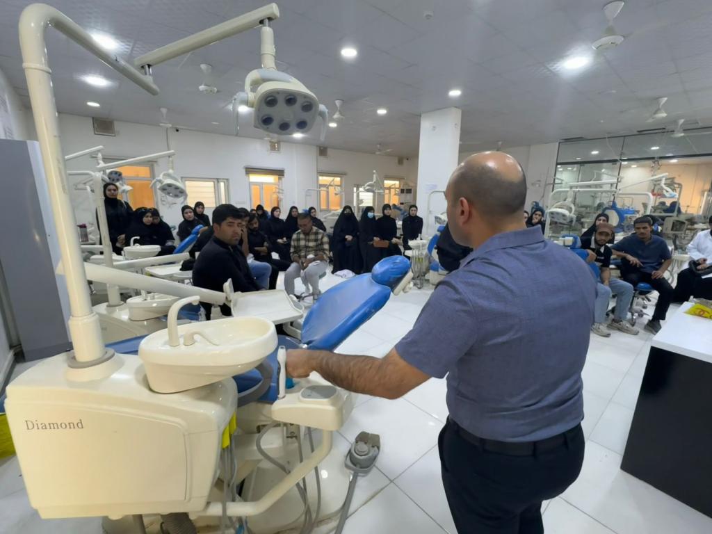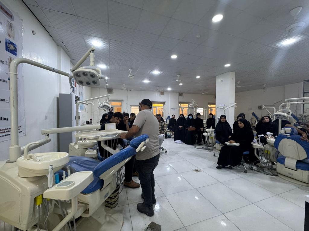 مع بدأ التدريب الصيفي في كلية طب الأسنان للطلبة الناجحين من المرحلة الرابعة الى المرحلة الخامسة أقامت وحدة معالجة وتجميل الاسنان محاضرة تعريفية للطلبة تم التطرق بها لعدة نقاط لها أهمية خاصة في فترة التدريب الصيفي منها توجيهات خاصة باتباع أساليب التعقيم والتطهير وفق المعايير العالمية والصحية وتوصيات ادارية خاصة بنظام العمل داخل العيادات من جانب اخر أقيمت ورشة عملية تعريفية باجزاء وحدات علاج الاسنان وكيفية التعامل معها وتجنب الاعطال التي من الممكن ان يواجهها الطالب اثناء فترة العمل على الاجهزة وحدة الاعلام والمتابعة في كلية طب الأسنان