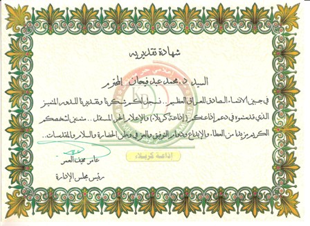 كرّمت إذاعة كربلاء في احتفالها بالذكرى السابعة لتأسيسها رئيس جامعة أهل البيت بتقديم درع المواطن تقديراً لجهود الجامعة في نشر الوعي العلمي والثقافي والتربوي في المحافظة.. كما قدمت الإذاعة في احتفالها الذي أقيم على قاعة البيت الثقافي شهادات تقديرية لمجموعة من الأساتذة في الجامعة من بينهم الدكتور محمد عبد فيحان رئيس قسم الصحافة والدكتور صالح عباس الطائي والأستاذ محمد آل تاجر تقديراً لجهودهم المبذولة في رفد الإذاعة بالملاكات الإعلامية المتخصصة وإقامة علاقات التواصل البناء في المجالين الثقافي والإعلامي بين الجامعة و وسائل الإعلام المختلفة.