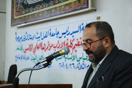 الخطيب الحسيني الشيخ عبدالرضا معاش في ندوة (الشباب مستقبل العراق) في رحاب جامعة أهل البيت عليهم السلام