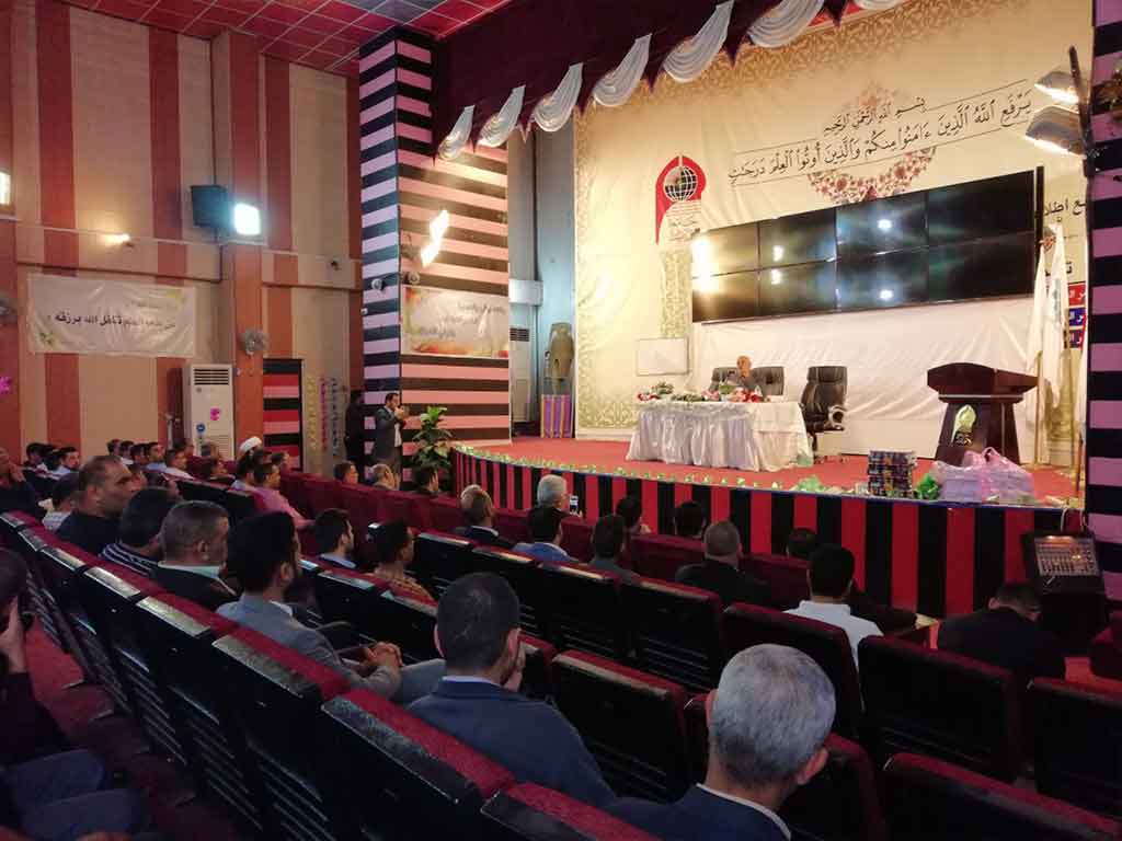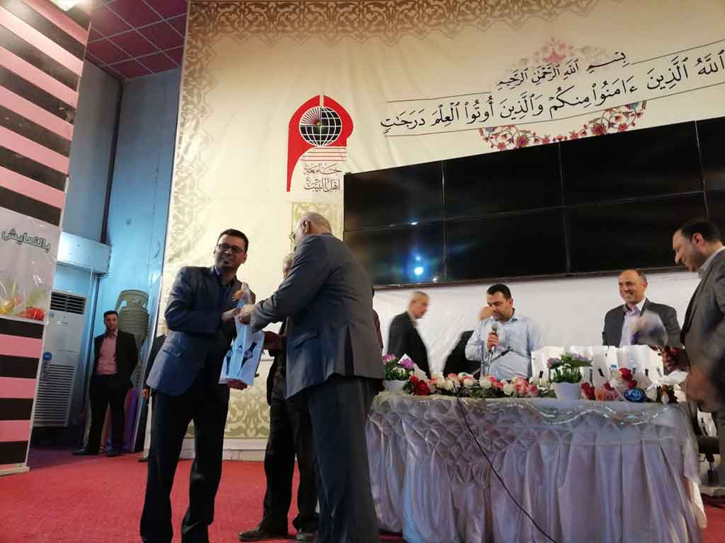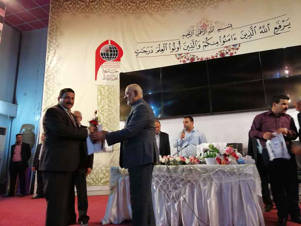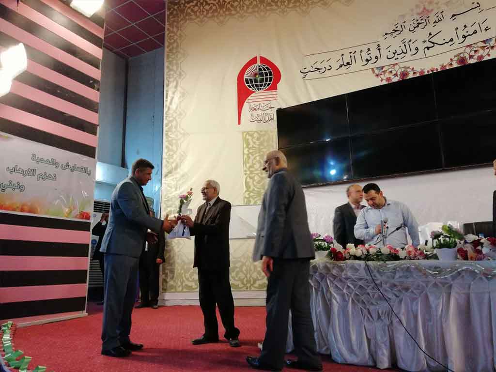 احتفلت كلية العلوم الاسلامية قسم السياحة الدينية بعيد المعلم وحضر الاحتفالية مؤسس جامعة اهل البيت عليهم السلام الدكتور محسن القزويني وعميد كلية العلوم الاسلامية  الدكتور عبد الحميد النجدي ومعاون العميد وعدد من التدريسين في القسم وعدد خفير من الطلبة وافتتح الاحتفال بقراءة اي من الذكر الحكيم والوقوف  لقراءة سورة المباركة الفاتحة على ارواح شهداء الوطن من القوات الأمنية والحشد الشعبي والقى عميد الكلية ومؤسس الجامعة كلمة بحق المعلم و الاستاذ الجامعي و دوره البارز  في بناء المجتمع و في الختام وزع الدكتور محسن القزويني الهدايا على الاساتذة بالنيابة عن الطلبة و كرم عميد الكلية مؤسس الجامعة بهذه المناسبة و تقدم له بالشكر و العرفان على الدعم و التعاون المستمر المقدم من قبل الهيأة المؤسسة لانجاح المسيرة العلمية في الجامعة
