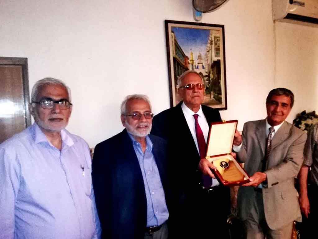 كرم رئيس جامعة اهل البيت عليهم السلام الاستاذ الدكتور صاحب الاطرقجي رئيس اللجنة التحضيرية لمهرجان الاسبوع العلمي الثقافي الرابع عشر الاستاذ الدكتور عباس الحميري بدرع الجامعة بحضور مؤسس الجامعة الدكتور محسن القزويني حيث تقدم الدكتور الاطرقجي بالشكر والامتنان الى الدكتور الحميري على جميع الجهود التي بذلها من اجل نجاح مهرجان الاسبوع العلمي الثقافي الرابع عشر . هذا وقد بين الدكتور القزويني الدور الفعال والمتميز الذي يقوم به الدكتور الحميري منذ تأسيس الجامعة . ومن الجدير بالذكر ان الاستاذ الدكتور عباس الحميري كان رئيسا لجامعة اهل البيت عليهم السلام في السابق