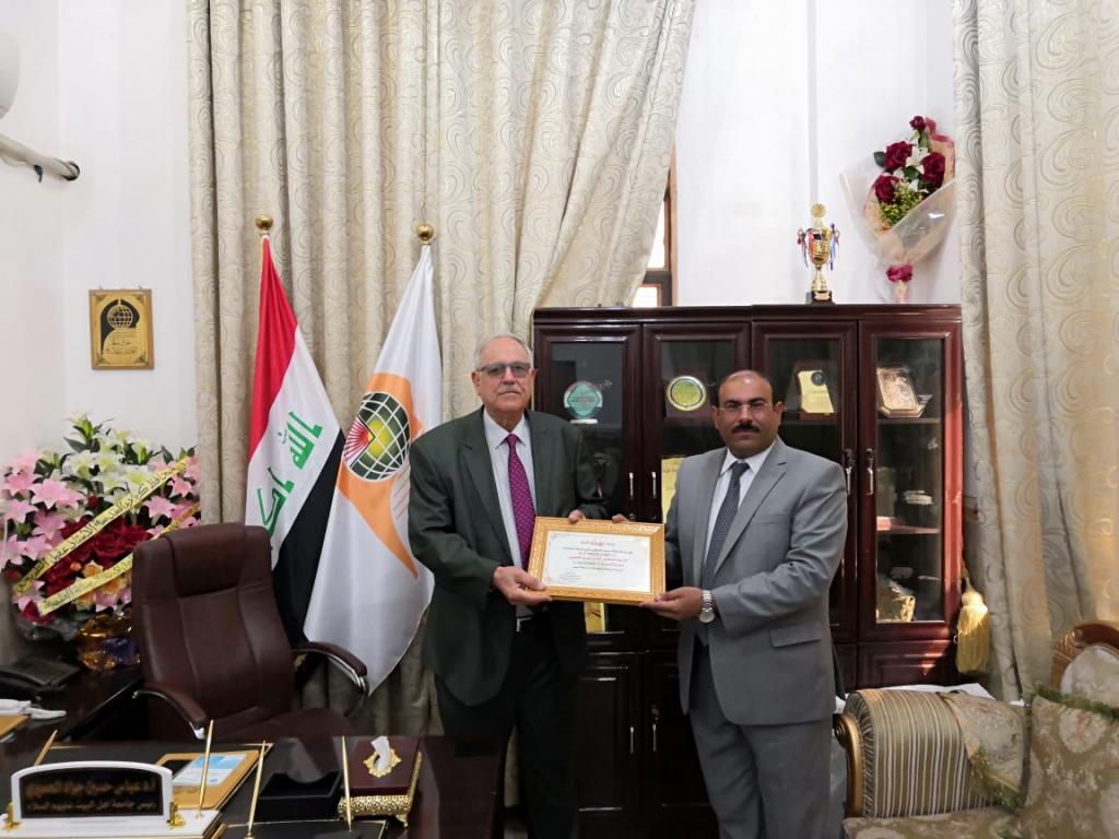 زار وفد من نقابة الاكاديميين العراقيين جامعة اهل البيت عليهم السلام وكان في استقبال الوفد رئيس جامعة أهل البيت عليهم السلام الاستاذ الدكتور عباس الحميري ومؤسس جامعة اهل البيت عليهم السلام الدكتور محسن القزويني و الدكتور صالح الطائي حيث تقدم ممثل نقابة الاكاديميين العراقيين الدكتور علاء بتكريم الدكتور الحميري بمناسبة تسنمه منصب رئاسة جامعة أهل البيت عليهم السلام و من جانب اخر كرم ممثل النقابة عميد كلية الصيدلة الاستاذ المساعد الدكتور  علاء عبد العباس الجنابي بمناسبة تسنمه منصب عمادة كلية الصيدلة في الجامعة وفي الختام تم تكريم المدرس الدكتور سهاد رضا متعب لحصول بحثها على جائزة ثاني ارصن بحث علمي على العراق و قد تقدم ممثل الوفد باحر التهاني الى جامعة اهل البيت عليهم السلام على هذا الانجاز و اوضح ان هذا الانجاز لايحسب للجامعة فقط و انما يعتبر احد الانجازات المهمة في مدينة كربلاء