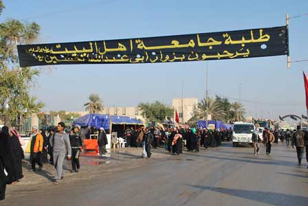 أقام أساتذة وطلبة جامعة أهل البيت عليهم السلام سرادقاً في موقع عمود رقم 1941 القريب إلى مدخل مبنى محافظة كربلاء المقدسة وقد قاموا بتقديم جميع أنواع الخدمات التي تحتاجها زوار أبي عبدالله الحسين عليه السلام في ذكرى اربعين يوماً من شهادته وشهادة أصحابه الكرام.