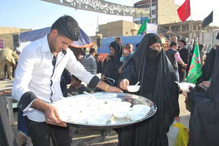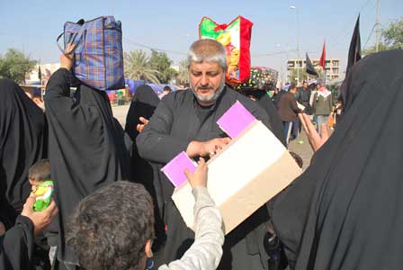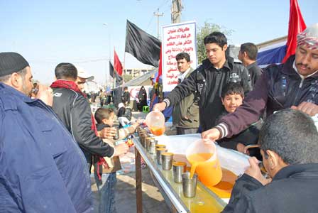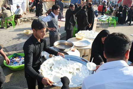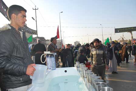فهناك من راح يقدم الشراب والطعام للزوار وهناك من شارك في المفرزة الطبية وهناك من راح يوزع الكتيبات حول أسرار زيارة عاشوراء وهناك من راح يرحب بالزوار عبر مكبرات الصوت.