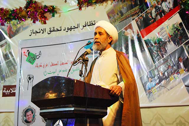 كما والقى في المهرجان الأستاذ هاشم المطيري كلمة الحشد الشعبي وكانت كلمة الجامعة لسماحة الشيخ علي الشمري.