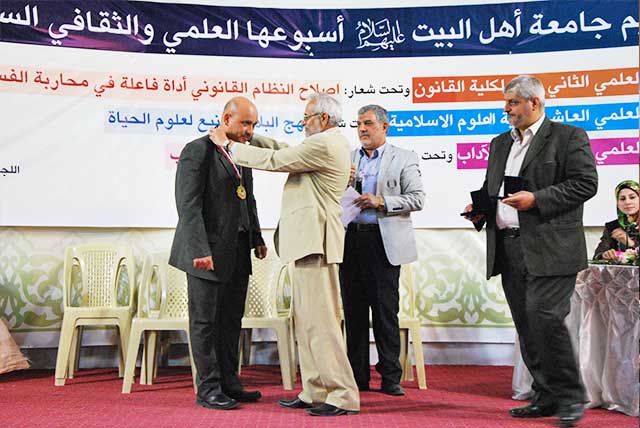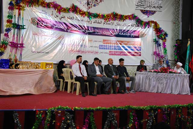 ضمن فعاليات الاسبوع اللعلمي والثقافي السنوي في جامعة أهل البيت عليهم السلام جرت صباح هذا اليوم 26/ نيسان / 2016 مسابقة علمية ، ثقافية بين طلبة الجامعة لاختيار الطلاب الثلاثة الأوائل على الجامعة من الذكور والاناث والأوائل على كلياتهم بعد فوزهم من قبل لجنة الاختيار بحضور الدكتور محسن القزويني مؤسس الجامعة والأستاذ الدكتور صادق الموسوي رئيس الجامعة.
