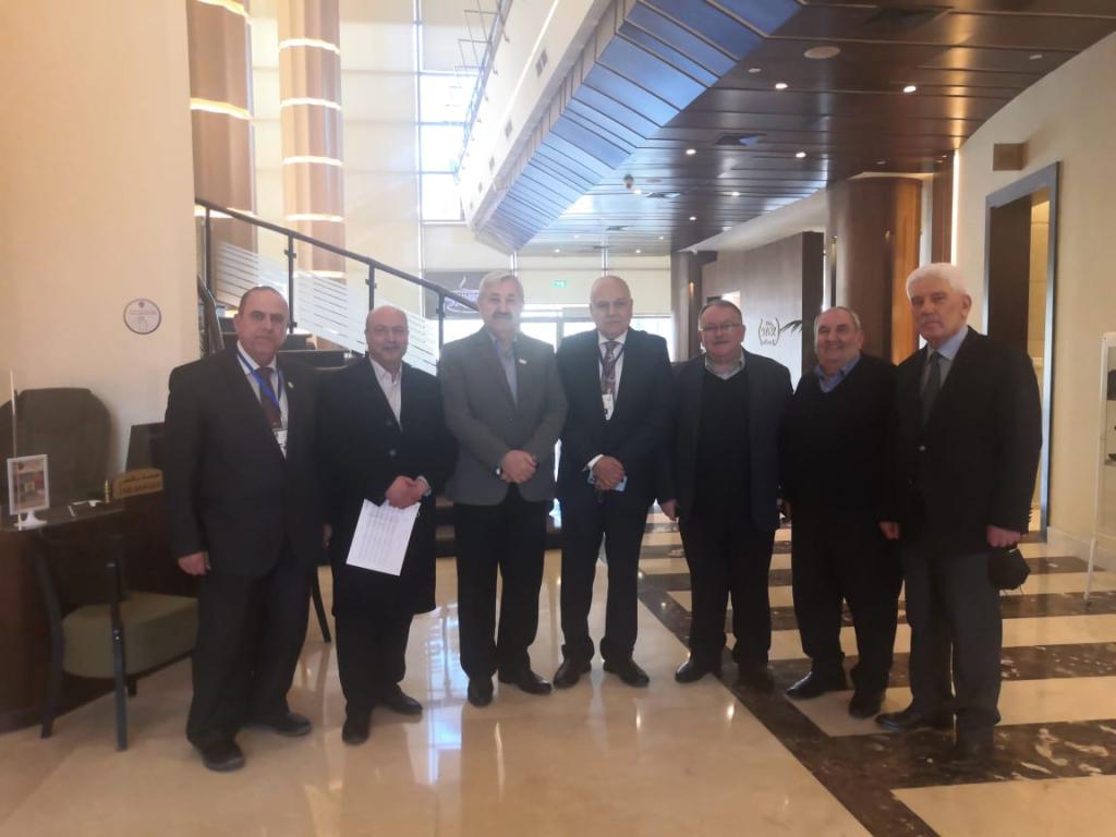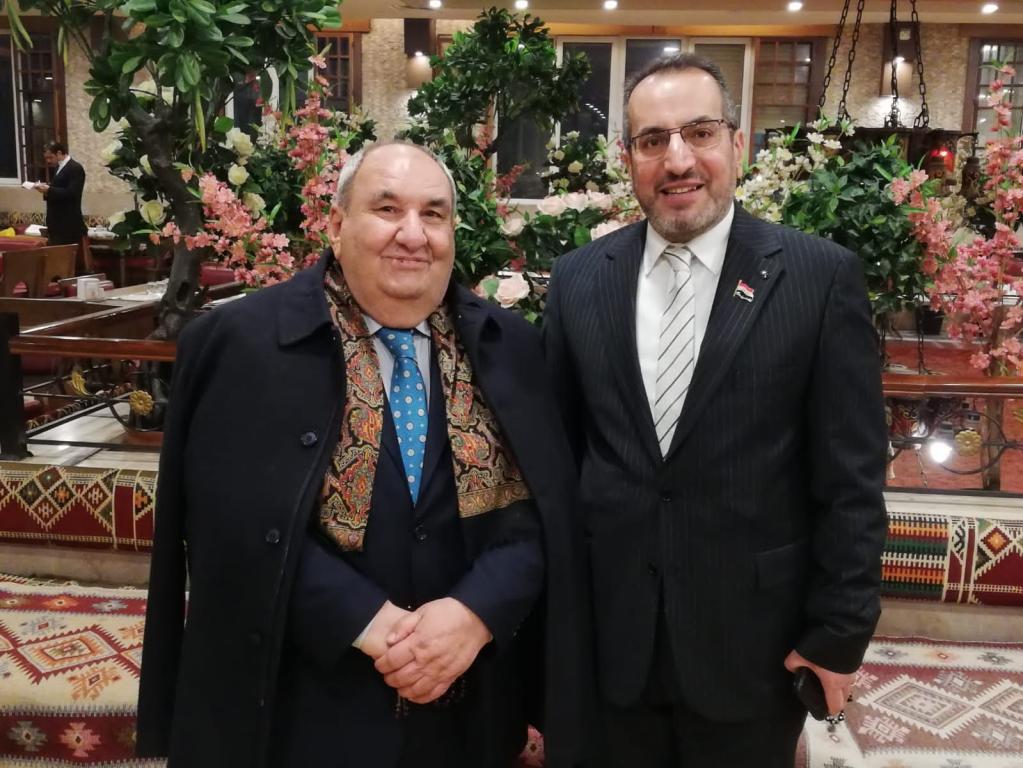 المشاركين العراقيين في اجتماعات الدورة ٥٤"لاتحاد الجامعات العربية المنعقدة في عمان للفترة من ٣/٢٦"الى،٣/٣٠" وعلى هامش الاحتماعات عقدت لقاءا تشاوريا لغرض تنسيق الاراء والمقترحات وتم اللقاء بضيافة الدكتور وسيم التميمي المستشار الثقافي العراقي في عمان /الاردن حيث رحب بالحضور وتمنى لهم اقامة سعيدة وتمنى للمشاركين تحقيق اهداف الجامعات العراقية والمتعلقة بنشاطات واختصاصات الاتحاد وقدم ا. د. لبنان الشامي شكره وتقديره للدكتور وسيم على هذة المبادرة ومن ثم استمع الحاضرين للسيد رئيس جامعة كربلاء المقدسة ا. د. باسل خليل نائل لمقررات اجتماع المجلس التنفيذي للاتحاد الذي تم عقده صباح السبت ٣/٢٦" ومنها مايتعلق بالمنح والزمالات الدراسية ورسوم الاشتراك واهمية انتماء كافة الجامعات العراقية الحكومية والاهلية للاتحاد وتوثيق العلاقات مع الجامعات العربية واهمية ان يأخذ العراق دورا متميزا وموقعا في الاتحاد وتشكيلاته التنظيمية لكون العراق يضم بالوقت الحاضر اكثر من١٢٠جامعة حكومية واهلية وكذلك لتاريخ العراق المشرق في تاسيس الجامعات العراقية حيث تعد جامعة بغداد من اقدم الجامعات العربية وكما تم مناقشة تقديم مقترح لاقامة اجتماعات الدورة ٥٥ في العراق في بغداد او في احدى المحافظات وبهذا الصدد قدم الاستاذ الدكتور اياد البرزنجي رئيس جامعة الكتاب رسالة دعوة لاقامة اجتماعات الدورة ٥٥بضيافة جامعة الكتاب وكانت التفاته موفقة وكما استمع المشاركين لمداخلات واراء الحاضرين بهذا اللقاء ومنهم روؤساء جامعات :الانبار الفلوجة :بابل' كويسنجق' بيان في اربيل ' المستقبل صلاح الدين في اربيل.. وجامعة تشك الدولية في اربيل اضافة لمداخلة واراء الاستاذ المتمرس الدكتور لبنان هاتف الشامي من جامعة اهل البيت (ع) في كربلاء المقدسة علما ان بعض المشاركين بهذا اللقاء قد شاركو مسبقا بعدة اجتماعات للاتحاد للسنوات السابقة ولهذا اوضح واكد الاستاذ الدكتور احمد انور رىيس جامعة صلاح الدين السابق ورىيس جامعة بيان في اربيل حاليا اهمية التنسيق العراقي المشترك ورسم استراتيجية للعمل المشترك للحضور الفاعل في قيادة اتحاد الجامعات العربية وفي نهاية اللقاء اخذت الصور الجماعية ومن جانب اخر وبعد انتهاء الدعوة الكريمة من لدن السيد المستشار الثقافي العراقي في عمان الاكرم تم اللقاء التعارفي مع معالي الامين العام للاتحاد الجامعات العربية ا. د. عمرو سلامة المحترم