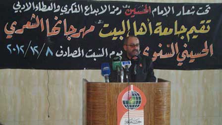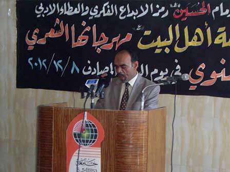 أقامت جامعة أهل البيت عليهم السلام مهرجانها الحسيني الشعري السنوي صباح يوم السبت 23 محرم الحرام 1434 هـ الموافق 8/12/2012م تلبية لأمر إمامنا الصادق عليه السلام بإحياء أمر آل محمد عليهم السلام، إذ ألقى عددٌ من الشعراء قصائد تغنت بأمجاد أهل البيت الكرام عليهم الصلاة والسلام وبالنهضة الحسينية والدروس التي يمكن استلهامها من يوم عاشوراء الخالد، وقد بدأ المهرجان في الساعة العاشرة صباحاً بآيات قرآنية كريمة رتلها السيد علي السيد محسن القزويني واعقبه رئيس الجامعة الأستاذ الدكتور عبود جودي الحلي فرحب بالأدباء والأفاضل وبيّن ان الامام الحسين عليه السلام ودروس كربلاء المقدسة لاتخص طائفةً دون اخرى، فالناسُ جميعاً يستلهمون من يوم عاشوراء معاني الثورة والإصرار على انتزاع الحقوق ورفض الظلم.ثم ألقى الأديب عباس خلف علي الدعمي رئيس الاتحاد العام للأدباء والكتاب العراقيين في كربلاء المقدسة كلمة أعرب فيها عن استعداد الاتحاد للتعاون مع المؤسسات الاكاديمية لخدمة هذا البلد العزيز وعقيدته الاسلامية السمحاء.