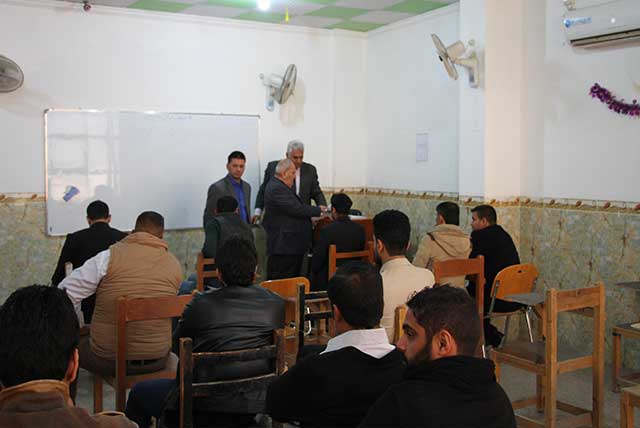 السيد مساعد رئيس جامعة اهل البيت الاستاذ الدكتور لبنان الشامي يلتقي بطلبة الصف الاول في كلية الصيدلة و باقي الكليات ضمن توجهات متابعة رئاسة الجامعة