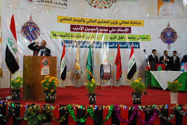 حضر معالي وزير التعليم العالي والبحث العلمي الاحتفال الذي أقامته جامعة اهل البيت عليهم السلام صباح يوم السبت 26/10/2013 بمناسبة مرور عشر سنوات على تأسيس الجامعة وتخريج الدورة السابعة تحت شعار دورة المحبة والتعايش.