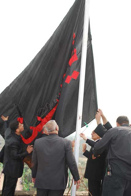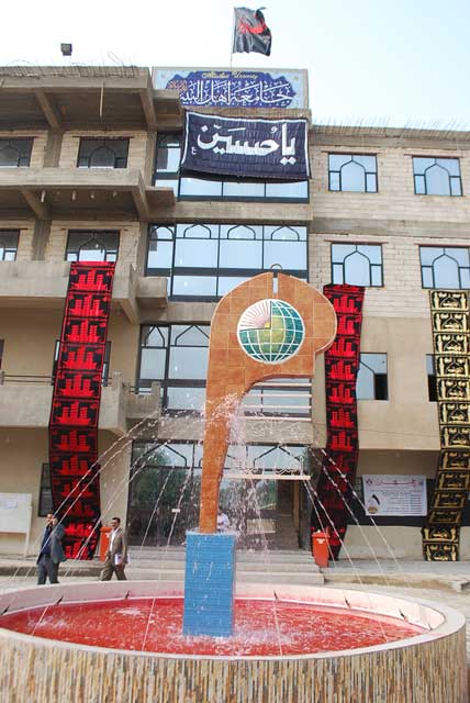 رفع راية الامام الحسين عليه السلام على سارية جامعة أهل البيت عليهم السلام