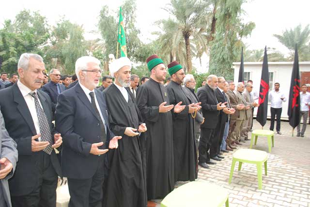 في أجواء مفعمة بالحزن وقلوب حرى وعيون زينتها العبرات لمصاب سيد الشهداء أبي عبد الله الحسين عليه السلام وكما هي الحال في كل عام استقبلت جامعة أهل البيت عليهم السلام متمثلة برئيسها الأستاذ الدكتور صادق عبدالعزيز الموسوي ومؤسسها السيد الدكتور محسن باقر القزويني وعمداء كلياتها ورؤساء الأقسام والأساتذة والطلبة وفد الأمانة العامة للعتبة الحسينية المقدسة إيذاناً ببدأ مراسيم رفع راية الإمام الحسين عليه السلام على سارية جامعة اهل البيت عليهم السلام وقد بدأ الحفل بتلاوة آيات من الذكر الحكيم بعدها ألقى السيد الدكتور محسن القزويني كلمة شكر فيها القائمين على هذه الفعالية لإحياء الشعائر الحسينية المباركة في جامعات العراق كما تطرق في كلمته إلى البعد التاريخي لمعسكري الخير والشر والممتدة آثارهما إلى يومنا هذا حيث معسكر الخير المتمثل بخط ونهج أهل البيت عليهم السلام نهج الصلاح والسلام والمؤاخاة ومعسكر الشر المتمثل بقوى الباطل والارهاب وممارسة شتى أنواع الظلم والاضطهاد للإنسانية أجمع.