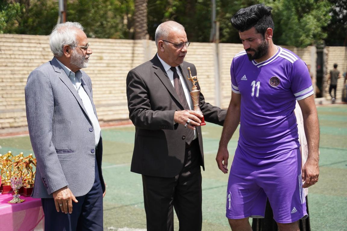 ضمن فعاليات اليوم الثالث للاسبوع الثقافي والعلمي في الجامعه وبحضور الدكتور محسن القزويني مؤسس الجامعه والدكتور باسم العقابي مساعد رئيس الجامعه للشؤون الاداريه والدكتور حسن حنتوش عميد كلية القانون والدكتور هاشم الحيدري والدكتوره رابحه الرماحي عميد كلية التربيه البدنيه وعلوم الرياضه اقام قسم النشاطات الطلابيه المباراة النهائية بخماسي كرة القدم والتي جرت بين فريقي الصيدله المرحله الثالثه والقانون المرحله الثانيه وانتهت المباراة بفوز فريق الصيدلة بفارق ضربات الجزاء بعد ان انتهت المباراة بالتعادل بهدف لكل فريق وبعد انتهاء المباراة قام الدكتور محسن القزويني مؤسس الجامعه والراعي الرسمي للبطوله بتوزيع الجوائز التقديريه على اللاعبين