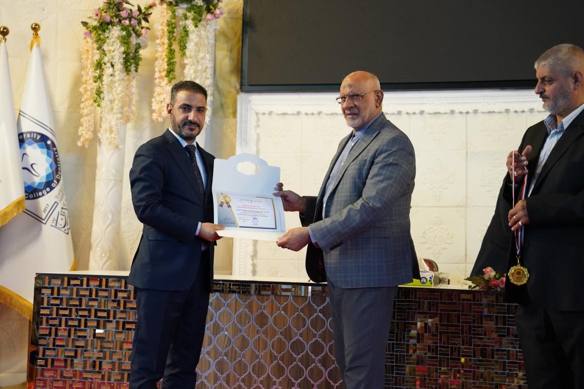 والاستاذ المهندس منتصر الامارة رئيس اتحاد البرلمانيين العراقيين والاستاذ الدكتور حسن الياسري مستشار رئيس الوزراء للشؤون الدستورية والأستاذ الدكتور فراس المسلماوي عضو مجلس النواب ونائب رئيس لجنة التعليم العالي النيابية وعدد كبير من الساده البرلمانيين وعمداء الكليات الاهلية والسيد رئيس جامعة اهل البيت ع الاستاذ الدكتور حميد النجدي والدكتور محسن القزويني مؤسس الجامعه وعمداء كليات الجامعة واساتذتها وطلبتها وابتدا الحفل بالانصات الى ايات بينات من الذكر الحكيم بعدها وقف الحاضرون لقراءة سورة المباركه الفاتحة على ارواح شهداء العالم الاسلامي وشهداء غزة والعراق ،،ثم ردد الجميع النشيد الوطني العراقي بعدها استمع الواقفون الى النشيد الوطني الفلسطيني ثم القى الدكتور محسن القزويني كلمة اشاد فيها بالمقاومة الباسلة وما يتعرض له اهل غزة من ابادة جماعية ثم اسهب بالحديث عن الظروف الصعبة التي كتب فيها الدستور العراقي في مرحلة اراد فيها الاعداء ان يبقى العراق تحت وطٱة وظلم الارهاب ،،وكيف قدم اعضاء الجمعية الوطنية انذاك نخبة خيرة من الشهداء الابرار فقط سبيل اتمام كتابة الدستور ،،كما تحدث عن الايجابيات والسلبيات التي شابت الدستور العراقي والتي نجمت عن عدم تطبيق بعض الفقرات المهمه وفيه وتهميش البعض الاخر