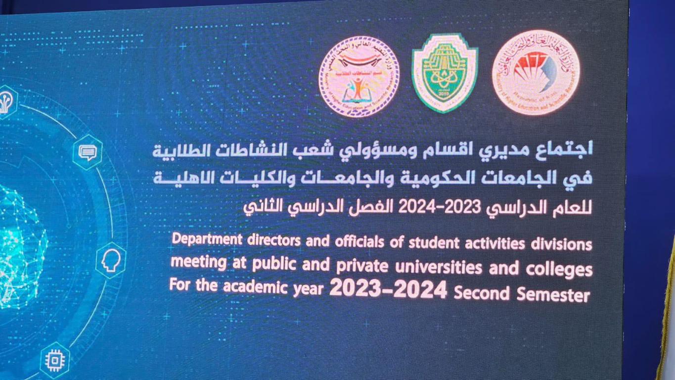 شارك الاستاذ حيدر المعمار مدير قسم النشاطات الطلابية في اجتماع مديري أقسام وشعب النشاطات الطلابية في الجامعات والكليات الحكومية والأهلية والذي اقامه قسم النشاطات الطلابية في جهاز الإشراف والتقويم العلمي في وزارة التعليم العالي والبحث العلمي لمناقشة الإيجابيات والسلبيات التي رافقت النشاطات في الفصل الدراسي الأول كما تمت مناقشة النشاطات المقترحة للفصل الدراسي الثاني وعقد الإجتماع في رحاب جامعة المستقبل في محافظة بآبل للمده من 17-18 /1 /2024