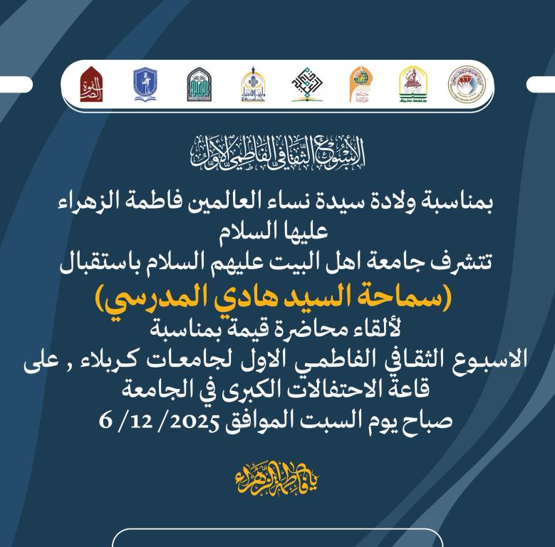Welcome الرئيسية الاسبوع الثقافي الفاطمي الاول لجامعات كربلاء test@itc أضيفت بواسطة test@itc بتاريخ جمعة, 04/17/2026 - 12:20 الانقضاء سبت, 12/06/2025 - 12:00 القسم الاعلانات الصور