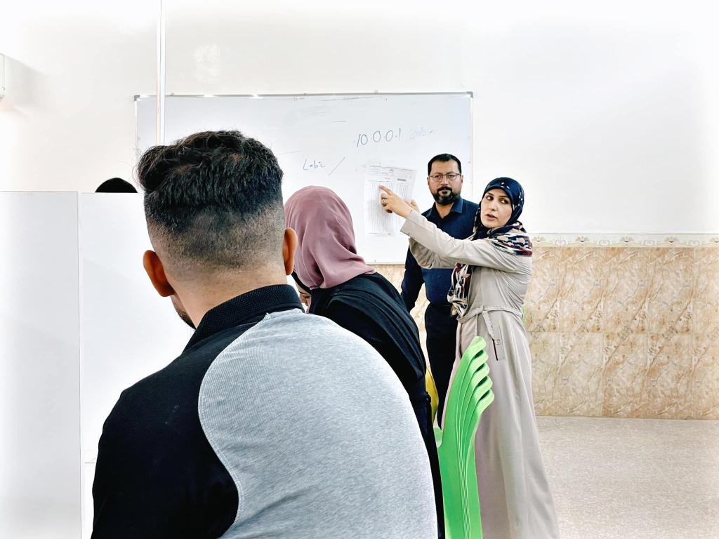 السيد مساعد رئيس الجامعة ا. د. لبنان الشامي وبرفقة اللجنة الوزارية يتفقدون الامتحانات النهائية الحضورية في كلية التقنيات الطبية والصحية