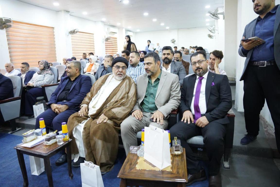 بحضور السيد رئيس الجامعة الاستاذ الدكتور حميد النجدي والسيد مساعد رئيس الجامعة للشؤون الادارية الاستاذ الدكتور باسم العقابي ومن الضيوف السيد مدير قسم التفتيش والشكاوي في دائرة صحة كربلاء المقدسة الدكتور الصيدلاني سرمد علوان حسين والسيد ممثل نقابة الصيادلة في محافظة كربلاء المقدسة الدكتور الصيدلاني علي غني المعمار بمشاركة عدد من الباحثين