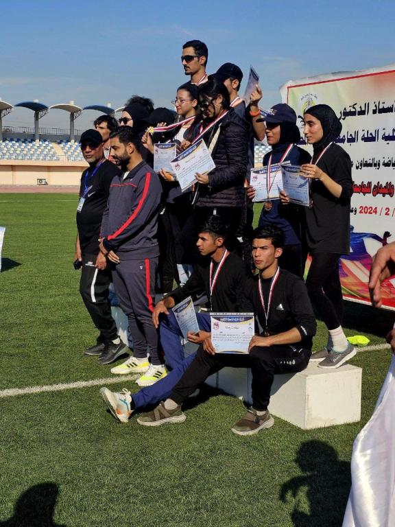 شارك طلبة وطالبات كلية التربية البدنية وعلوم الرياضة في الجامعة بفعاليات الملتقى السنوي الثالث الذي اقيم في رحاب كلية الحلة الجامعة بمشاركة اكثر من 20 من الجامعات والكليات الحكومية والأهلية ونال الوفد المشارك والمكون من 25 لاعب ولاعبه على استحسان الحضور وذلك لاحرازه على نتائج متقدمة في المسابقات ومن ابرز نتائجه احراز الميدالية البرونزية في سباق التتابع 4 * 100 متر للطلبة والطالبات ..