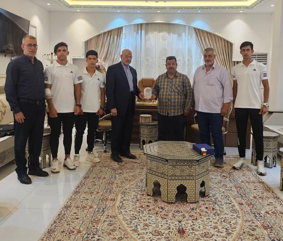 استقبل الاستاذ الدكتور حميد النجدي في مكتبه منتخب الجامعة بالعاب القوى الذي شارك في البطولة التي اقامها اتحاد الرياضة الجامعية في رحاب جامعة السليمانية بإقليم كردستان العراق وهنأ سيادته رئيس الوفد الدكتور رسول موحي على النتائج التي تحصل عليها الفريق المكون من كل من الطالب صالح جبار حسن الحائز على المركز الرابع في سباق 400 متر عدو والطالب ضرغام فاضل واوي الحائز على المركز الخامس في سباق 800 متر عدو والطالب مؤمل حسن هادي الحائز على المركز السادس في سباق 100 عدو ويذكر بان الجامعات المشاركة بلغ عددها 20 جامعة وكلية حكومية وأهلية وفي نهاية اللقاء قدم السيد رئيس الجآمعة درع اتحاد الرياضة الجامعية المقدم للفريق إلى الدكتور محسن القزويني مؤسس الجامعة مع التبريكات بمناسبة الحصول على هذه النتائج المتميزة