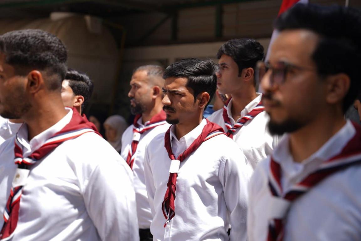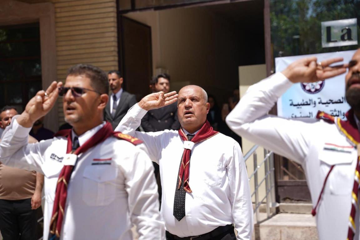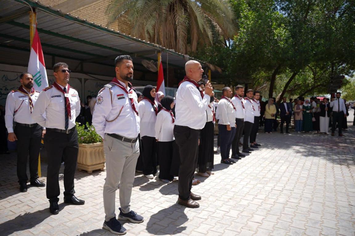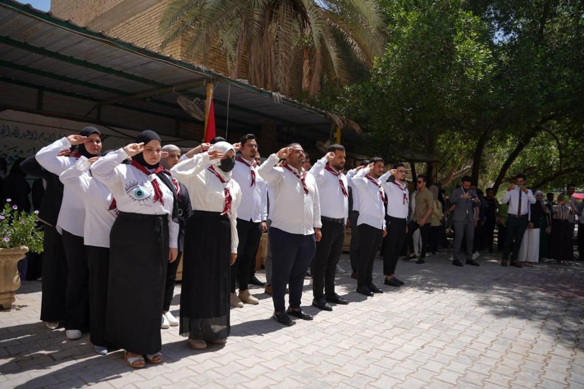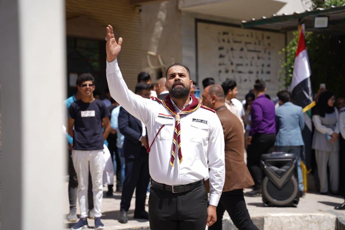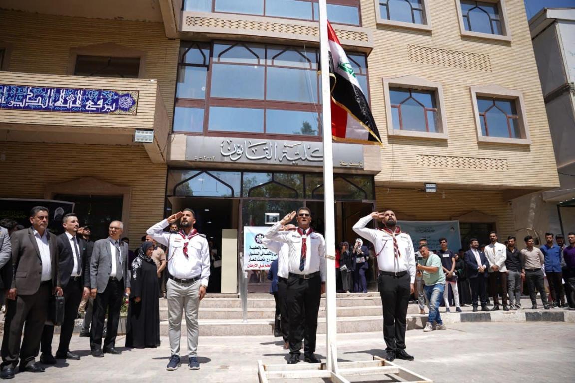 مراسيم رفع العلم العراقي إيذانا ببدء فعاليات كلية التربية البدنية وعلوم الرياضة