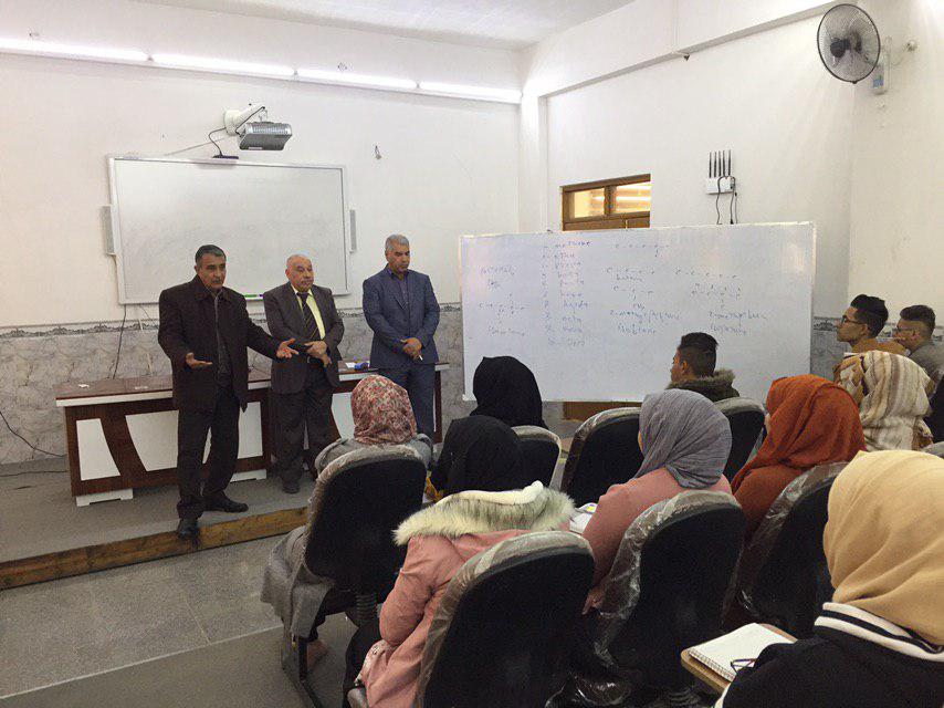 تفقد السيد مساعد رئيس الجامعة للشؤون العلمية الاستاذ الدكتور صاحب الاطرقجي برفقة السيد عميد الكلية الاستاذ المساعد الدكتور علي الرفاعي القاعات الدراسية للطلبة , حيث هنأ الطلبة ببداية العام الدراسي الجديد وحثهم على الالتزام بالدوام متمنيا لهم دوام الموفقية والنجاح .