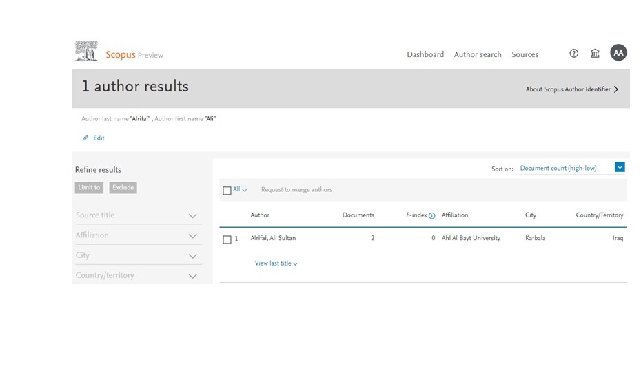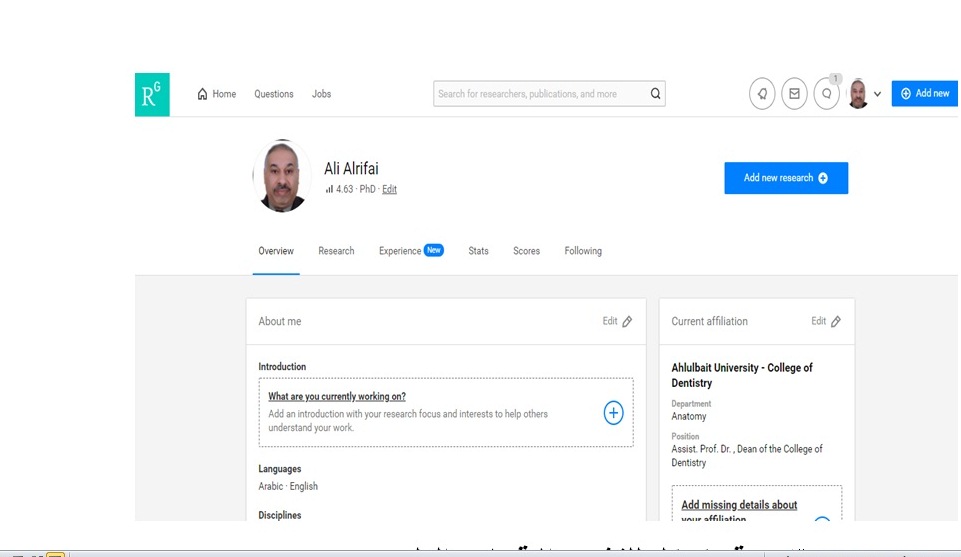 قائمة بالمواقع العلمية المشترك بها الاستاذ المساعد الدكتور علي سلطان الرفاعي
