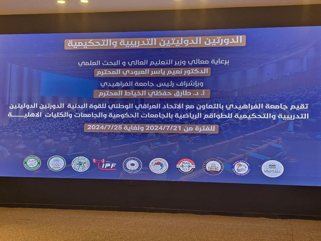 برعاية معالي وزير التعليم العالي والبحث العلمي الدكتور نعيم العبودي المحترم وبأشراف قسم النشاطات الطلابية في جهاز الاشراف والتقويم العلمي ؛ وبحضور رئيس مجلس ادارة جامعة الفراهيدي الدكتورة بتول موفق ورئيس الجامعة الدكتور طارق حفظي اقامت جامعة الفراهيدي الدورتين التدريبية والتحكيمية الدولية بالتعاون مع الاتحاد العراقي للقوة البدنية للفترة من 21 ولغاية 25 من الشهر الجاري 2024 ؛ وذكر مدير قسم النشاطات الطلابية الوزارية ان من اهداف القسم هو تطوير القيادات والكوادر الادارية والمهنية في الجامعات العراقية بالتنسيق مع الجامعات الحكومية والأهلية على حدا سواء ويذكر