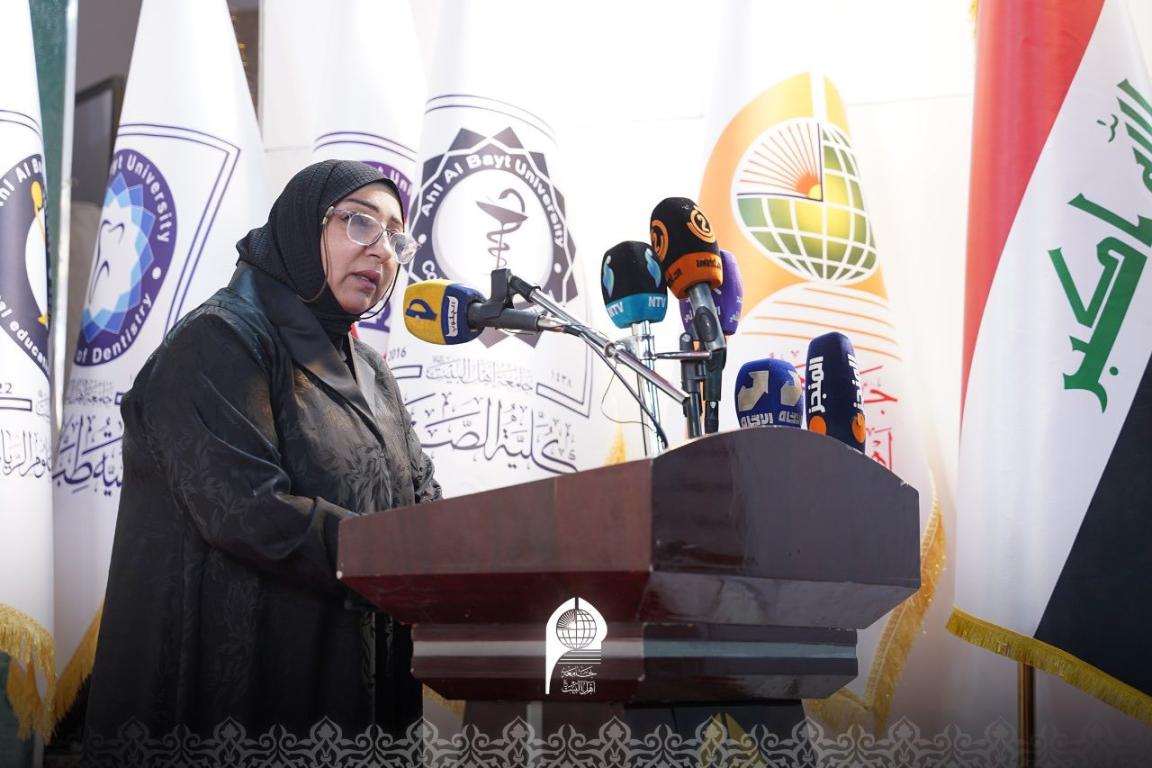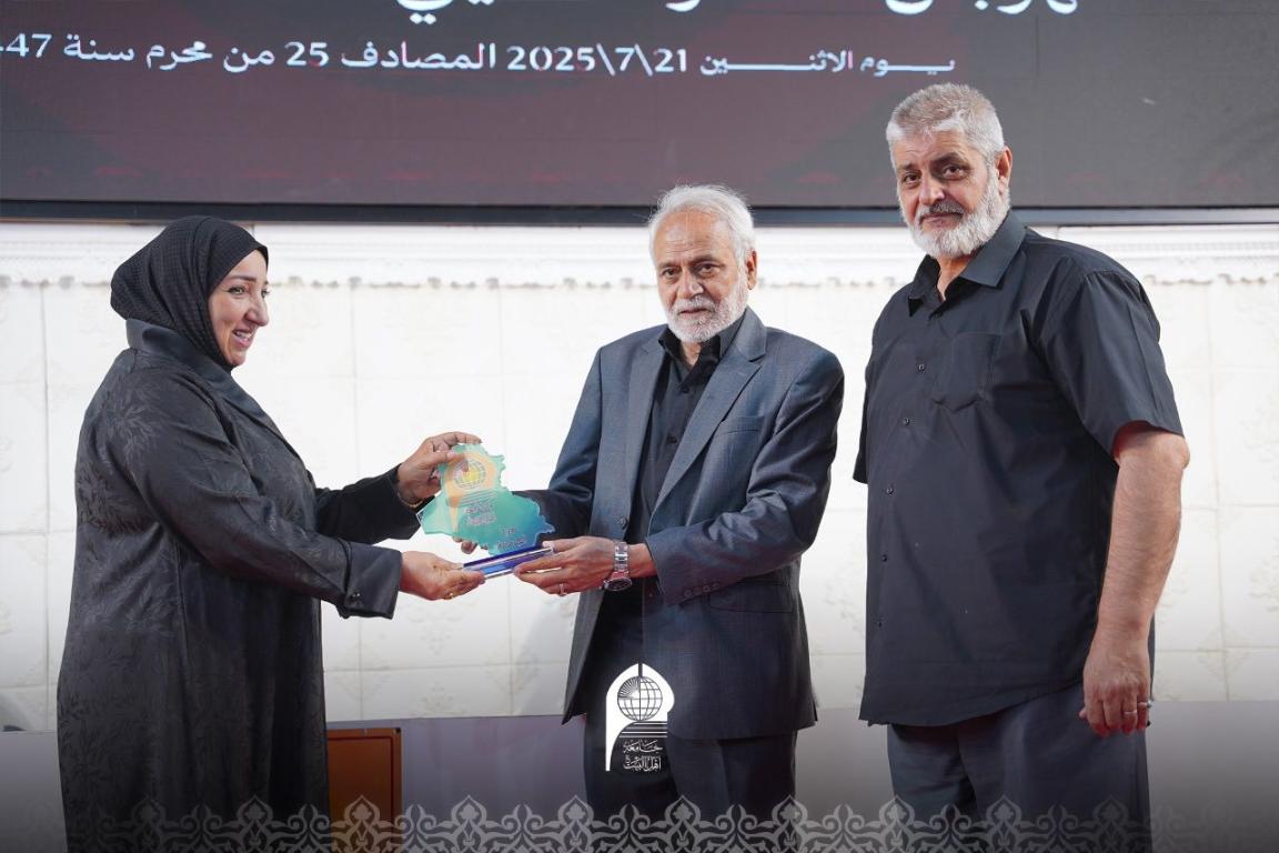 في ذكرى استشهاد الأمام علي بن الحسين عليهما السلام ،اقامت جامعة اهل البيت عليهم السلام مهرجان الشعر الحسيني العشرين تحت شعار ( على نهجك ثابتون ) على قاعة الاحفالات الكبرى في الجامعة ،وابتدأ الحفل بتلاوة إيات من الذكر الحكيم تلاها المقرئ الدكتور مصطفى ،بعدها قرأ الحضور سورة الفاتحة على ارواح شهداء الطف وشهداء الأمة الاسلامية وشهداء العراق كافة،،ثم تقدم الاستاذ الدكتور محسن القزويني مؤسس جامعة اهل البيت عليهم السلام بكلمة تاريخية مهمه تحدث خلالها عن اهمية الشعر خلال العصور وبالاخص في العصر الاسلامي وما له من دور اعلامي مهم في ذكر الاحداث وارشفتها ،حيث كان يطلق على الشعر بلسان العرب ،وكيف كان للشعر دور في حفظ الاحداث المهمه التي مرت بها الامم الموالية لاهل البيت عليهم السلام عبر التاريخ وحفظ الملاحم والوقائع التي ساهمت بثبات الموالين على نهج اهل البيت عليهم السلام ومقاومتهم ومقارعتهم للظلم والاضطهاد ونصرتهم للمظلوم أينما كان ،،والتمسك بالقضية رغم كثرة الأعداء والحاقدين ،واختتم حديثه بقراءة قصيده ملحميه حسينية ، وشارك في المهرجان كل الأدباء : الشاعر عوده ضاحي التميمي الشاعرة أمل الخفاجي الشاعر مهدي هلال الكربلائي الشاعر سعد العصامي الاستاذ صادق جعفر القزويني الاستاذ الدكتور عبود جودي الحلي كما ساهم الشاعر المبدع الكبير ،الاستاذ رضا الخفاجي بابيات شعرية ارسلها للسيد صادق القزويني قرأها نيابة عنه ،كمساهمة منه ولكي لا ينقطع عن المشاركة كما في كل عام ،،كونه يعاني من ظروف صحية قاهرة،، حيث دعا له جميع الحاضرون بالشفاء العاجل ببركة الأمام الحسين عليه السلام ،، وحضر المهرجان نخبة من عمداء الكليات الاجلاء واساتذها الكرام ،وجمع من الضيوف واداريي الجامعة