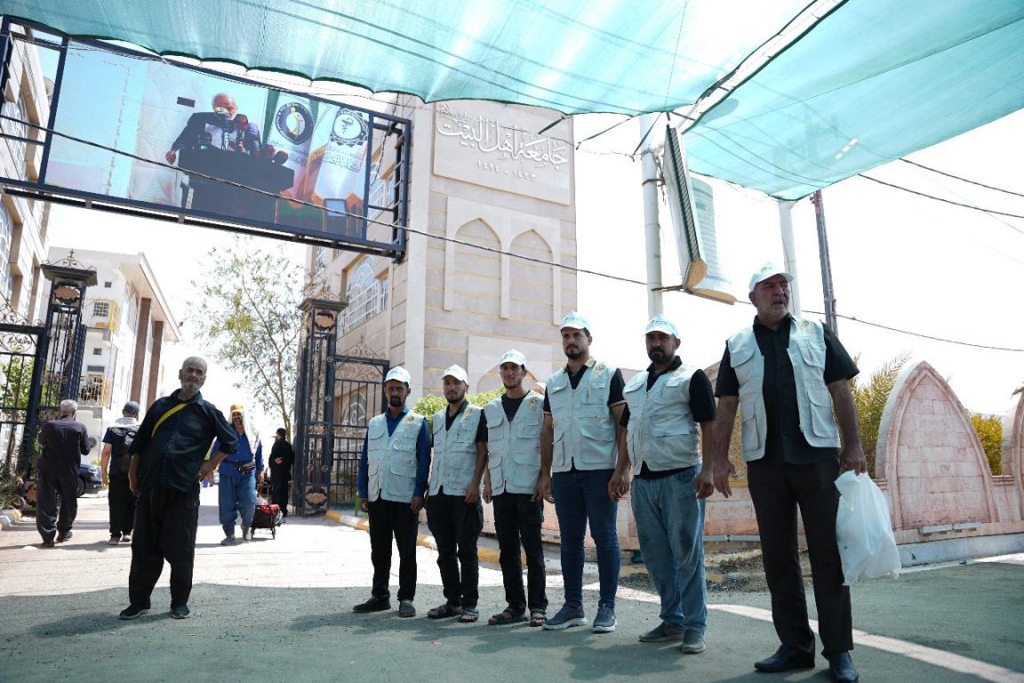 بتوجيه من رئاسة الجامعة كوادر جامعة أهل البيت عليهم السلام تباشر ومنذ يوم الإثنين المصادف 4 / 8 / 2025 بتقديم الخدمات الطبية والعلاج الطبيعي وخدمات الإرشاد من خلال توفير خدمة الإنترنت المفتوح للزائرين وتوزيع الطعام والمرطبات والشاي وتوزيع الثلج المنتج في معمل الجامعة على المواكب المجاورة مع تقديم خدمة إيواء وأستراحة الزائرين وذلك في بناية كلية التقنيات الصحية والطبية الواقعة على طريق النجف - كربلاء عند العامود 833 .
