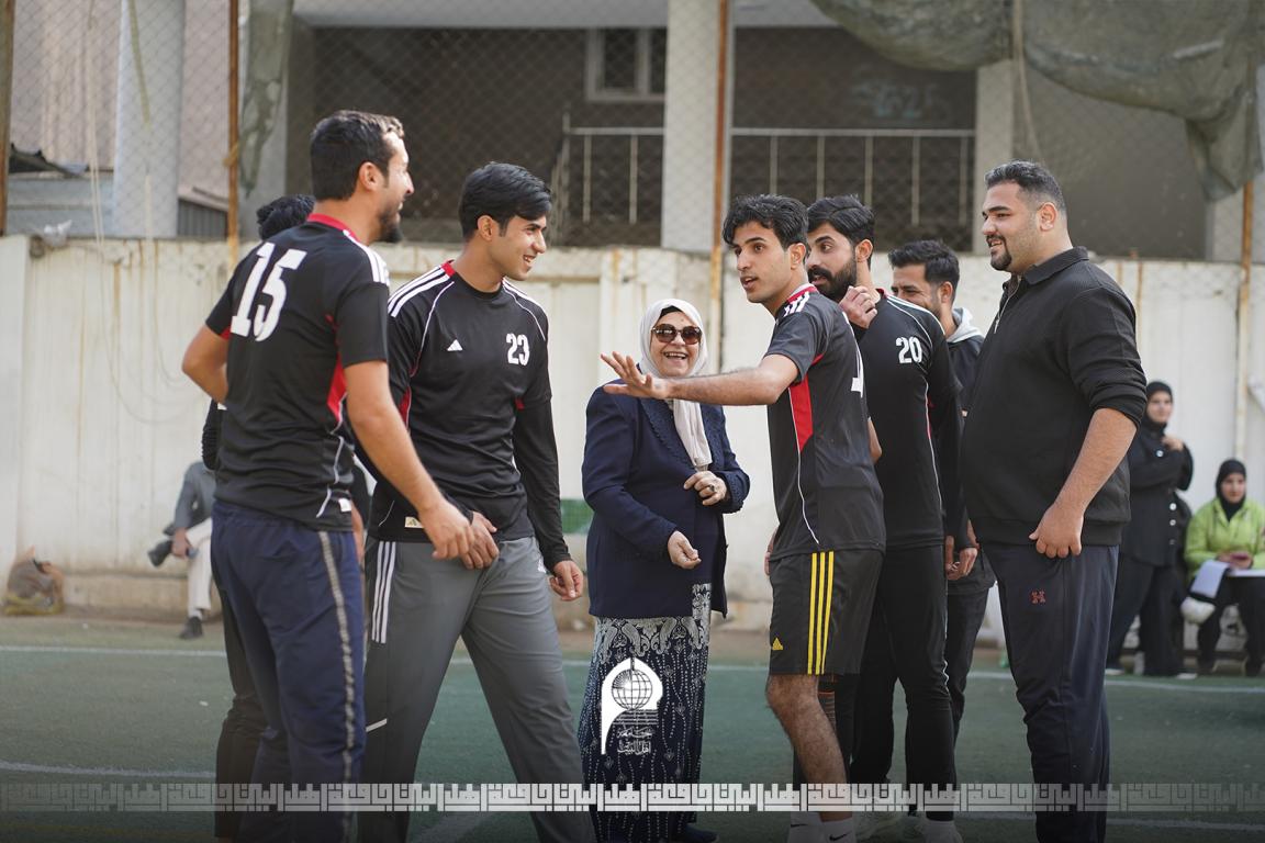 الأستاذ الدكتور رابحة الرماحي، التي تابعت مجريات المنافسات وقدّمت كلمات تشجيعية للفرق المشاركة، مؤكدة أهمية هذه النشاطات في تنمية المهارات البدنية وتعزيز الروح الرياضية بين الطلبة.