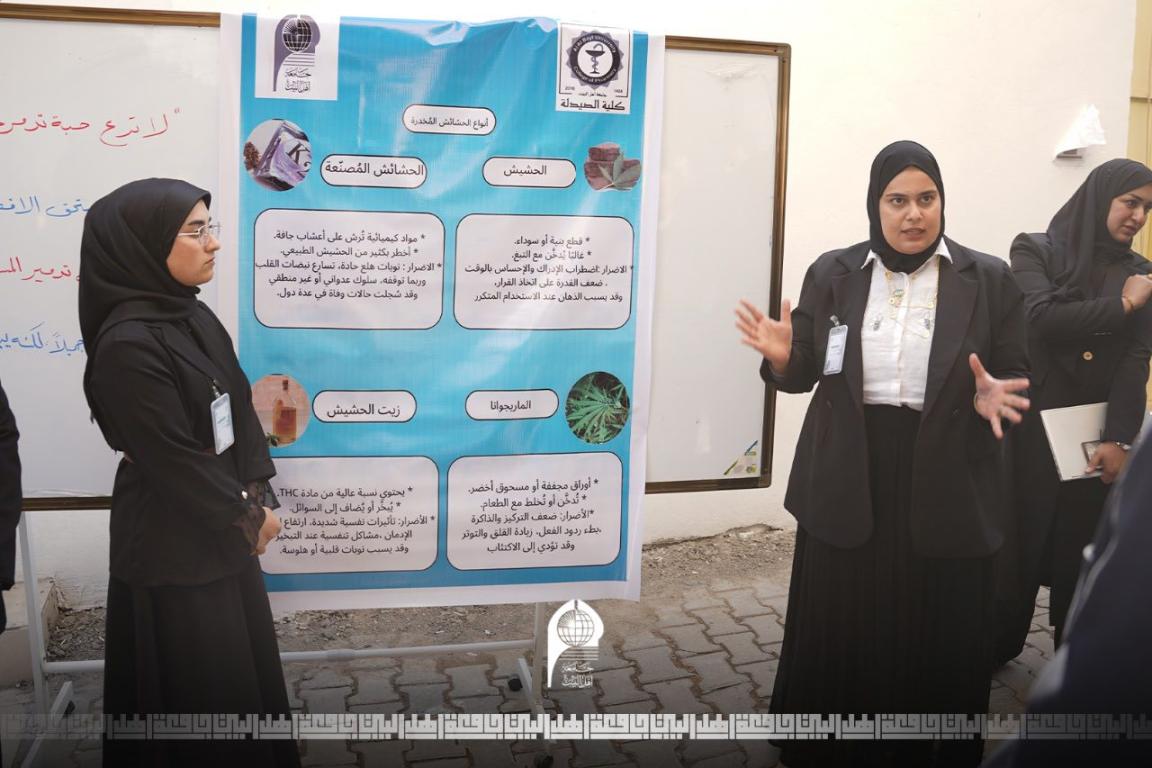 كما تم خلال الفعالية عرض بوسترات توعوية عن الأدوية والمؤثرات العقلية، إلى جانب صور وبروشورات تثقيفية، ما أتاح للطلبة فرصة التفاعل المباشر مع محتوى المعرض والاستفادة من المعلومات المقدمة.