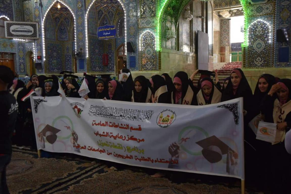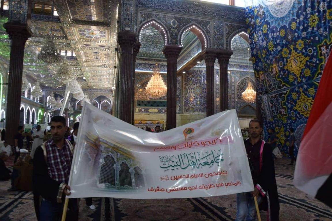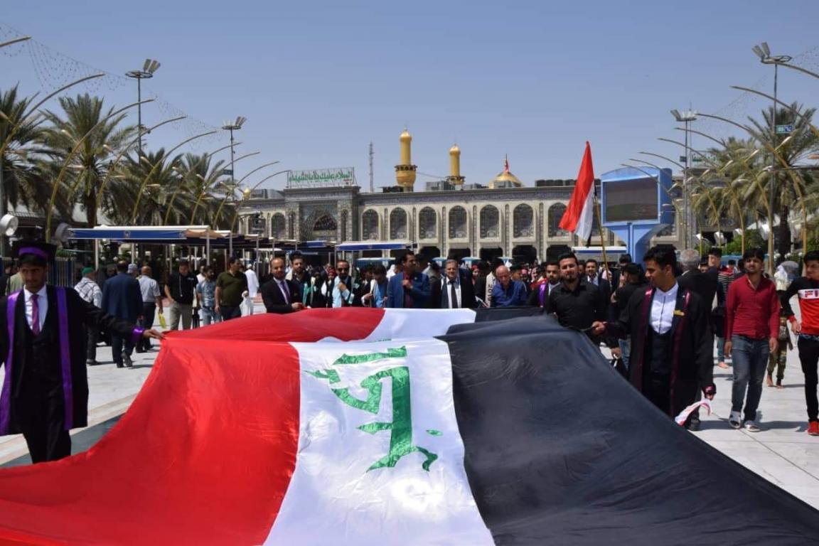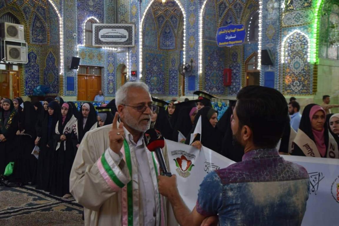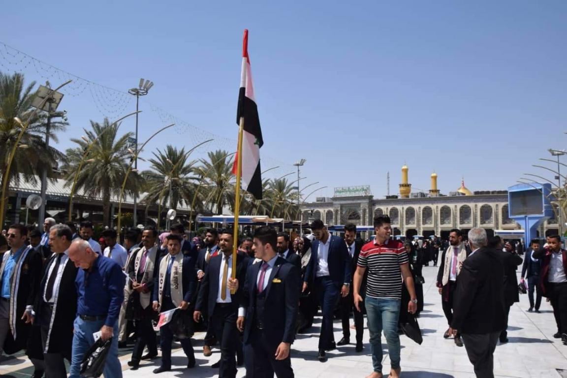 اقامت جامعة اهل البيت عليهم السلام مراسيم ترديد قسم التخرج للطلبة الخريجين للعام الدراسي 2018-2019 في داخل الصحن الحسيني بالتعاون مع مركز رعاية الشباب التابع للعتبة الحسينية المقدسة حيث حضر المراسيم مؤسس جامعة أهل البيت عليهم السلام الدكتور محسن القزويني و رئيس جامعة أهل البيت عليهم السلام الدكتور عباس الحميري و عمداء الكليات ورؤساء الاقسام و الاساتذة بالاضافة الى جمع من الناس المتواجدين في داخل الصحن الحسيني الشريف حيث ردد القسم على الطلبة مدير الاعلام و العلاقات العامة في الجامعة الاستاذ صادق القزويني و قدم مجموعة من القصائد بحق الامام الحسين عليه السلام بعدها كان هناك كلمة لرئيس الجامعة الدكتور الحميري الذي وجه الطلبة بالمضي على خطى الامام الحسين عليه السلام في حياتهم بعد التخرج بعدها تقدم ممثل الطلبة الخريجين الذي قدم كلمة بالنيابة عن الطلبة بين فيها ان الطلبة يعاهدون الامام الحسين عليه السلام بالمضي في طريقه نحو مستقبل مشرق و في الختام و بعد ترديد القسم توجه الحضور الى حضرة الامام العباس عليه السلام حيث القي مجموعة من القصائد بداخل صحن العتبة العباسية المقدسة القاها الدكتور محمد عبد فيحان