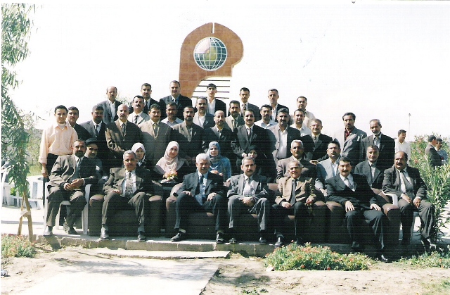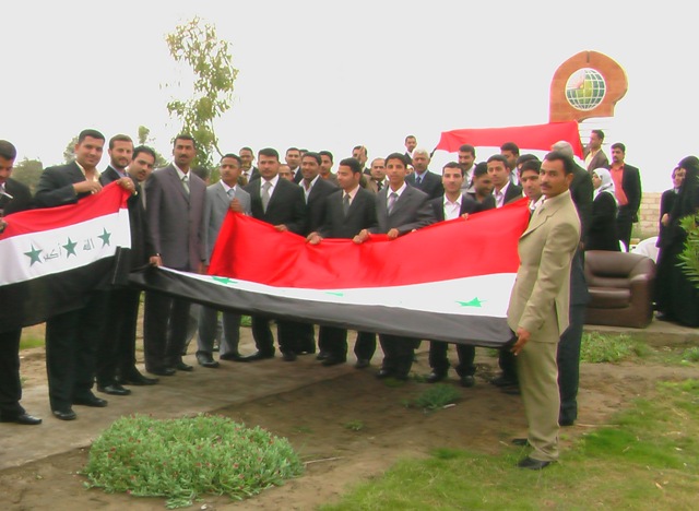 طلبلة المرحلة الرابعة يحتفلون بتخرجهم ويلتقطون الصور الجماعية في ساحة الجامعة مع أساتذتهم.