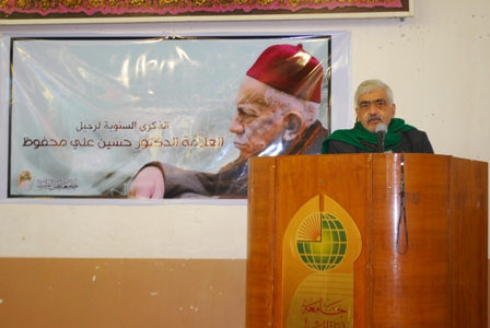 تكريماً و تخليداً للعلماء والمفكرين والمبدعين العراقيين أقامت جامعة أهل البيت (عليهم السلام) في كربلاء المقدسة حفلاً تأبينياً لمناسبة الذكرى السنوية الأولى لرحيل شيخ المحققين العلامة الكبير الأستاذ الدكتور حسين على محفوظ (رحمه الله)..