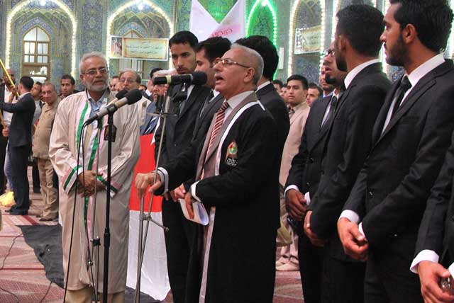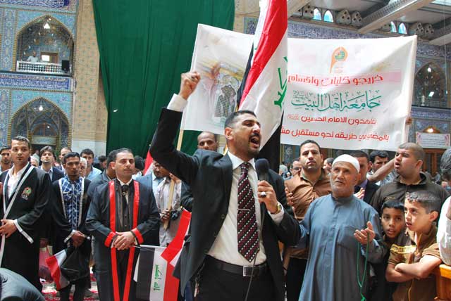 خريجو جامعة أهل البيت للعام الدراسي 2013-2014 يرددوا قسم الولاء أمام سيد الشهداء عليه السلام