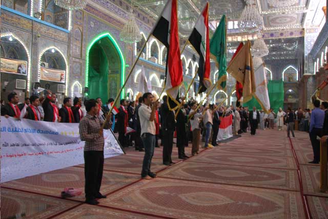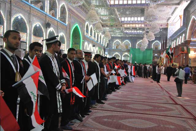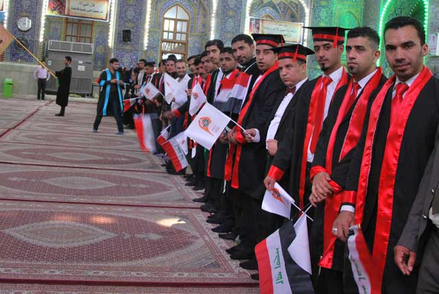 في رحاب حرم سيد الشهداء الإمام الحسين عليه السلام وأخيه أبي الفضل العباس، جرت مراسيم حفل تخرج طلبة المرحلة الرابعة من كليات الجامعة (القانون والآداب والشريعة) حيث بادرت الجامعة هذا النهج المبارك في ترديد القسم والولاء لسيد الشهداء، ليحظوا بشرف انتسابهم لقيم ومبادئ آل البيت عليهم السلام، فتكون معينا لهم في قابل أيام حياتهم وخدمة لمجتمعهم الناهض بعون الله تعالى.