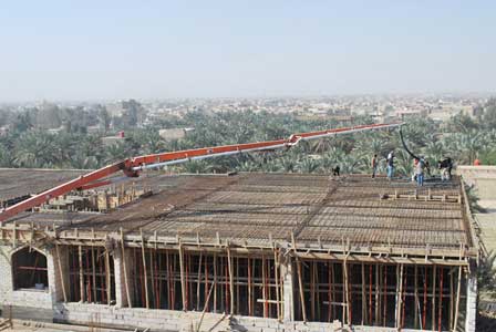 صب سقف الطابق الثالث لكلية الآداب والشريعة الاسلامية في جامعة أهل البيت عليهم السلام