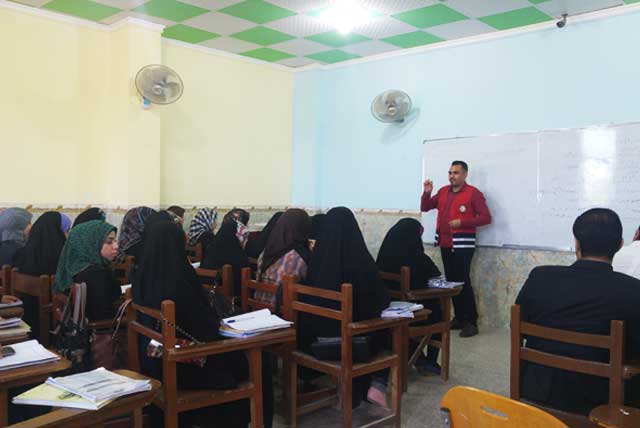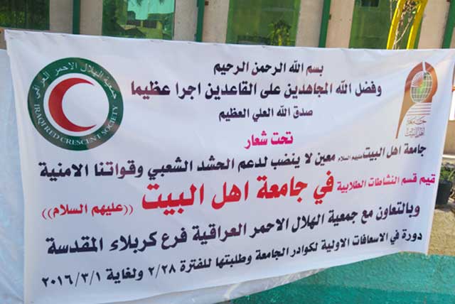 استمرت دورة الاسعافات الأولية في جامعة أهل البيت عليهم السلام لليوم الثاني وتضمنت محاضارت في الاعداد النفسي وتمارين عملية في الاسعافات الأولية.