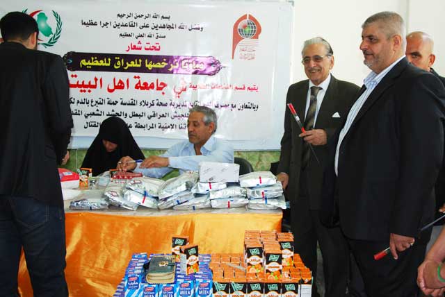 صرح مدير قسم النشاطات في جامعة اهل البيت عليهم السلام حيدر حسن جواد تستمر جامعة اهل البيت عليهم السلام حملتها لدعم مجاهدي الحشد الشعبي والقوات الامنية بالاشتراك مع الهيئة التدريسية والطلاب داخل الجامعة للتبرع بالدم ، هذا اقل مايمكن تقديمه لهم قياسا لما يبذله المجاهدون في ساحات المعارك