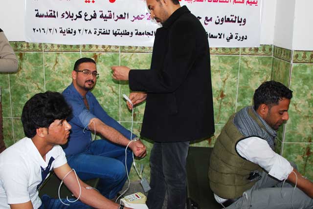 واضافت مسؤولة وحدة النشر في الهلال الاحمر زينب شعيب نضمنا بالاشتراك مع جامعة اهل البيت عليهم السلام حملة تضمنت للعديد من المحاور دورات التنمية البشرية ، ورش عمل الاسعافات الاولية ، استمرت هذه الحملة لمدة ثلاثة ايام خصصنا اليوم الاخير للتبرع بالدم بالتعاون مع مصرف الدم في كربلاء ، شاهدنا اقبال الطلاب والكادر التدريسي بصورة كبيرة جدا للتبرع بالدم ، واشارت ان هناك حملات اخرى امتدادا لدعم الحشد الشعبي والقوات الامنية