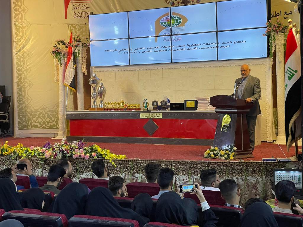 ضمن فعاليات الأسبوع الثقافي والعلمي لجامعة اهل البيت عليهم السلام أقيم مهرجان قسم النشاطات الطلابية يوم الثلاثاء المصادف ٢٠٢٢/٥/١٧