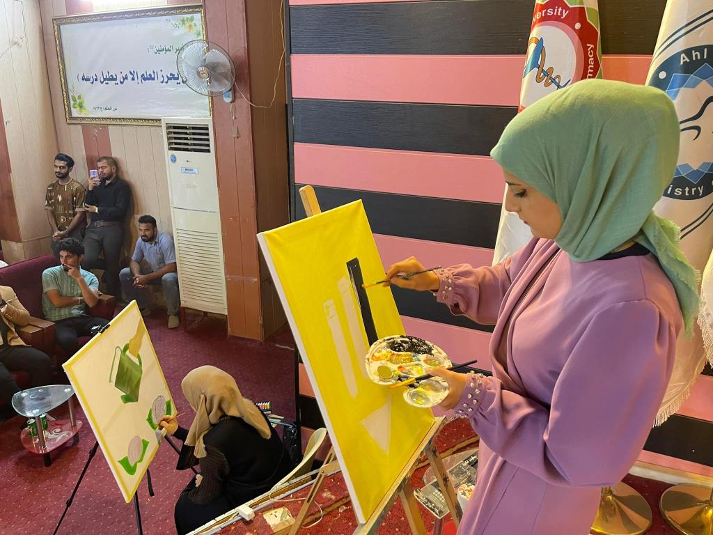 لينتقل الحضور بعدها إلى القاعة المركزيه وليفتتح رئيس الجامعه الاستاذ الدكتور حميد النجدي المهرجان الثقافي والفني بعد الكلمة الترحيبية للاستاذ حيدر المعمار مدير قسم النشاطات الطلابية في جامعة اهل البيت عليهم السلام والذي تضمن بعد الإنصات لآيات من القرآن الكريم وقراءة سورة الفاتحه على ارواح شهداء القوات الأمنية والحشد الشعبي المقدس والاستماع إلى السلام الوطني العراقي إقامة حواريه لثلاث من طالبات كلية الآداب أعقبها مشاهدة الافلام المشاركه في المهرجان الجامعي للفلم القصير والتي حاز أحدها على المركز الثالث في المهرجان لينتقل الحضور باسماعهم الى واحة الشعر الشعبي وتخلل النشاطات إقامة مسابقه فكريه للجمهور مع تقديم الهدايا القيمه وكذلك إبداع فنانات الجامعه بالرسم الحي المباشر ..