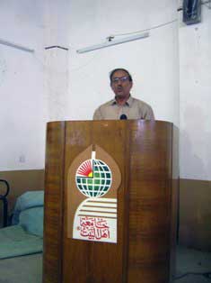 واستُهلّ الحفل بقراءة سورة الفاتحة على روح الفقيد وتبعها السيد علي القزويني بقراءة آيات من الذكر الحكيم..، ثمّ ألقى الأستاذ المساعد الدكتور حكمت عبيد الخفاجي عميد كلية الشريعة كلمة نيابة عن رئيس الجامعة وأساتذة وطلبة جامعة أهل البيت عليهم السلام استذكر فيها مواقف الفقيد وصفاته الحميدة والأثر البالغ الذي تركه برحيله المفاجئ.. وبعدها تحدث السيد بلاسم عزيز الموسوي بكلمة القاها نيابة عن أساتذة وطلبة كلية الشريعة الإسلامية قال فيها: إنّ آثار الفقيد لم تزل شاخصة بيننا ومازال حاضراً معنا بأفكاره وسلوكه ومحبته للطلبة ومعاملته التي استمدّها من اهل البيت عليهم السلام.