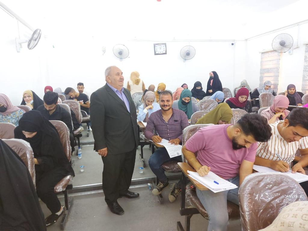 السيد مساعد رئيس الجامعة ا. د. لبنان الشامي وبرفقة اللجنة الوزارية يتفقدون الامتحانات النهائية الحضورية في كلية التقنيات الطبية والصحية